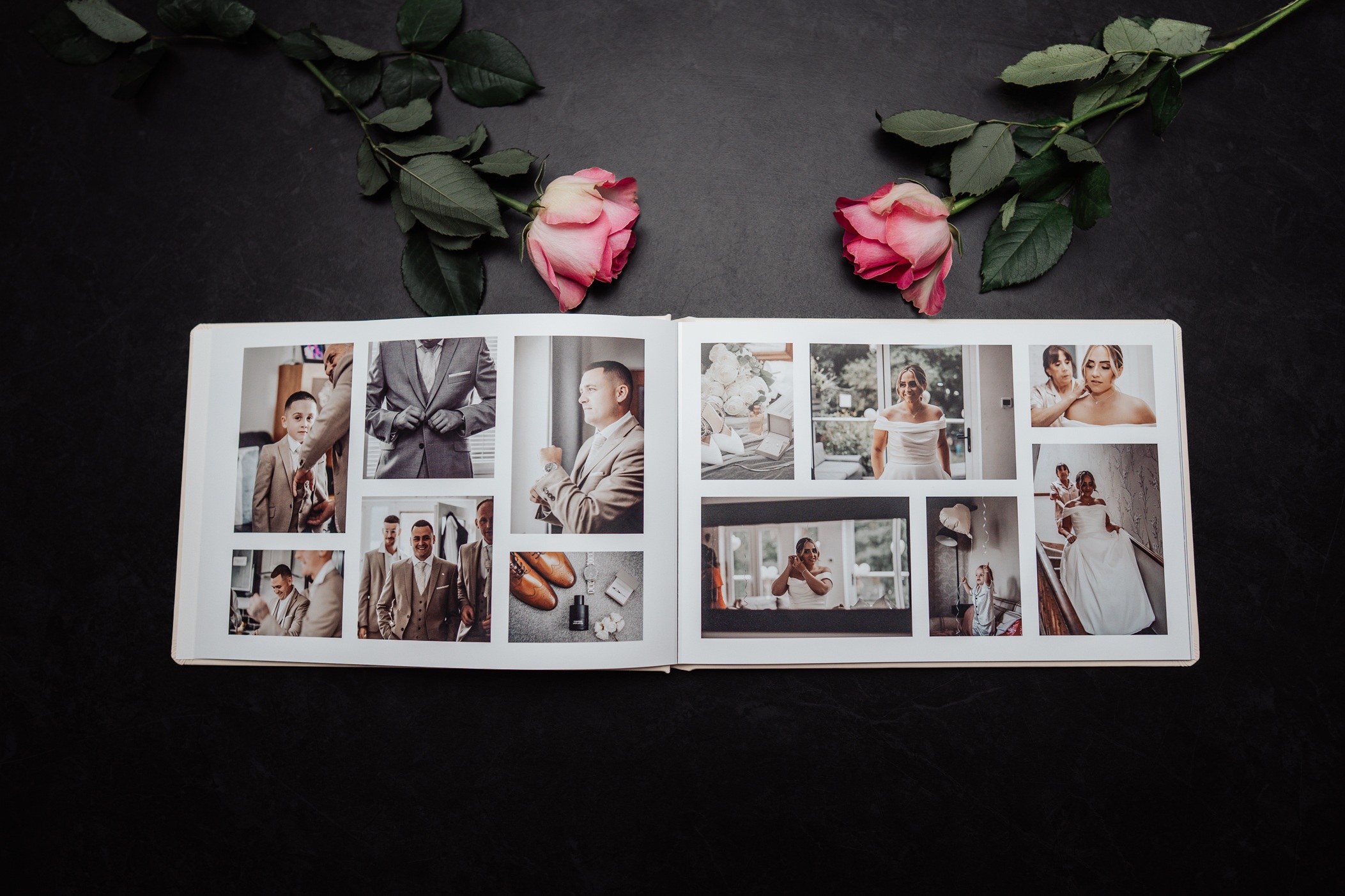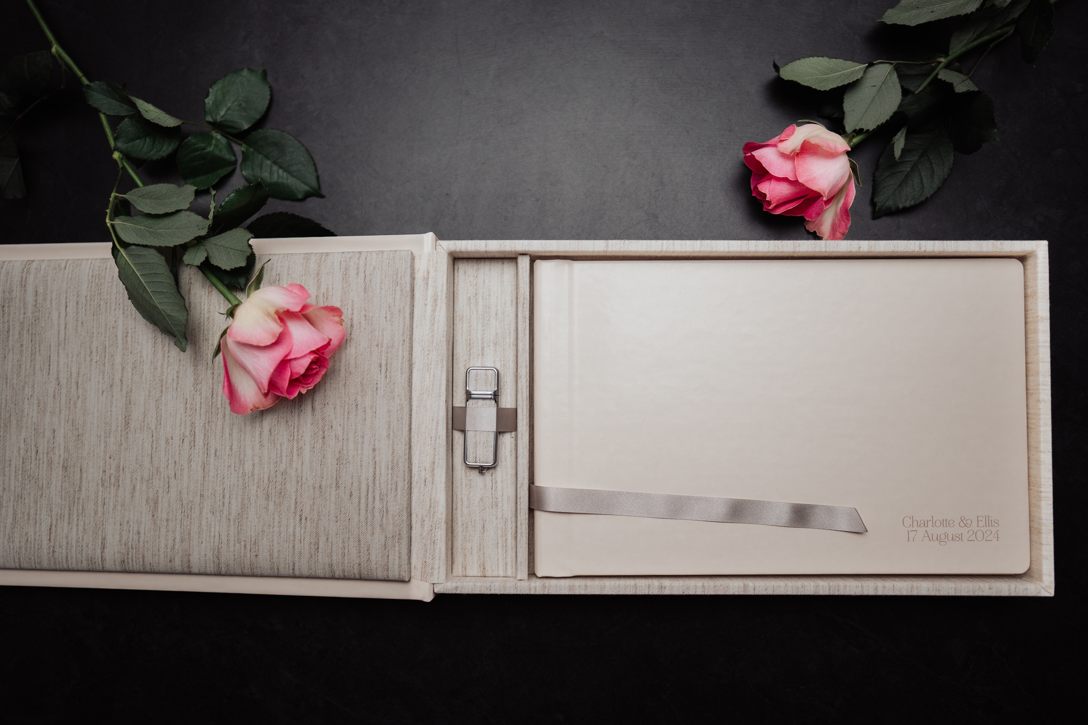 The ultimate way to relive your day. luxury flat-lay album lays completely flat for a stunning, seamless display of your photos. It includes a beautiful presentation box and a USB with all your final photos making it a truly premium keepsake.